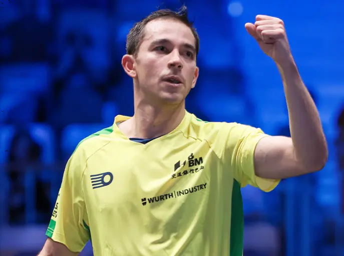 男单夺冠呼声最高的巴西世界冠军雨果随后登场,与宇田幸矢展开较量,后者虽然曾战胜张本智和等人夺得日本全国锦标赛的单打金牌,但已经是5年前的事情,随后便一直高开低走,实力明显不如雨果,最终被对方3-0横扫淘汰(11-7、11-5、11-6)。