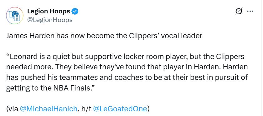 这番话表明,哈登不仅融入了快船队这个团队,而且还成为了球队的发声者。莱昂纳德是一个安静但能给予支持的更衣室球员,但快船队需要更多。他们相信在哈登身上找到了这样的特质。