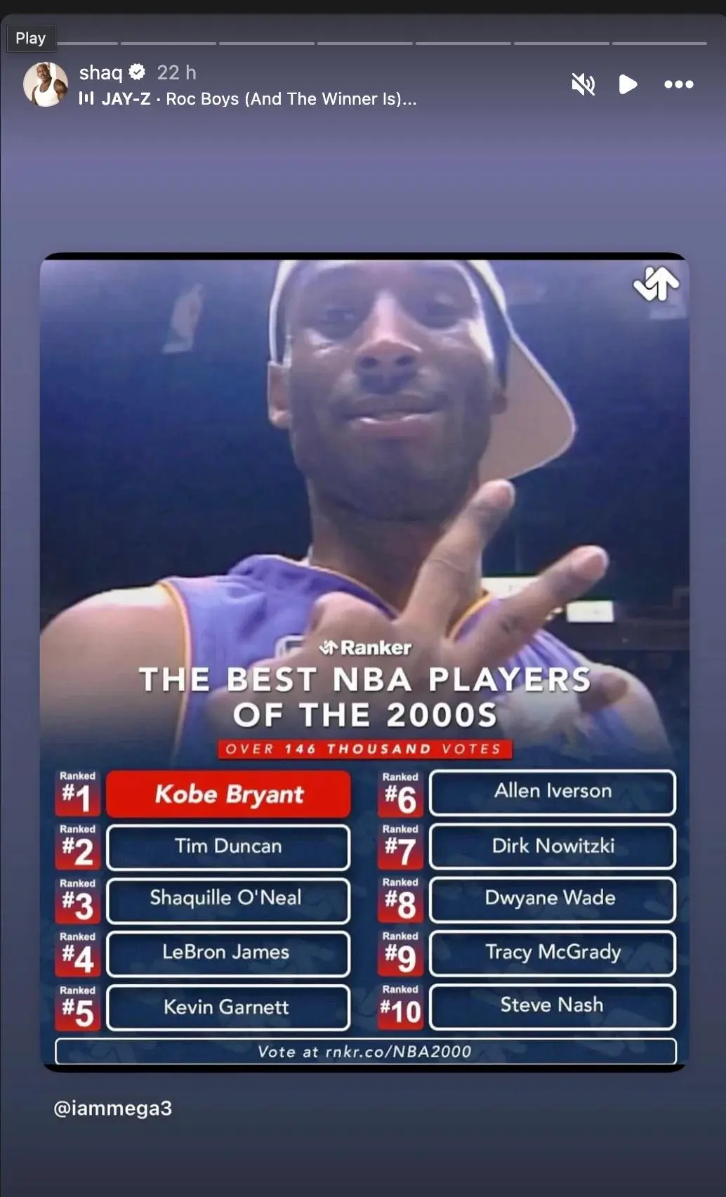 21世纪00年代的NBA,被誉为是NBA最后的荣光。因为那是攻防对抗最强时代的末班车,从那之后,NBA就慢慢进入了大部分球迷媒体心中最弱的篮球时代。最近,前NBA超级巨星奥尼尔,也是在Instagram story上分享了自己对于21世纪00年代,NBA最强的10名球员名单,这其中包括了球员的实力、赛场影响力和荣誉成就。