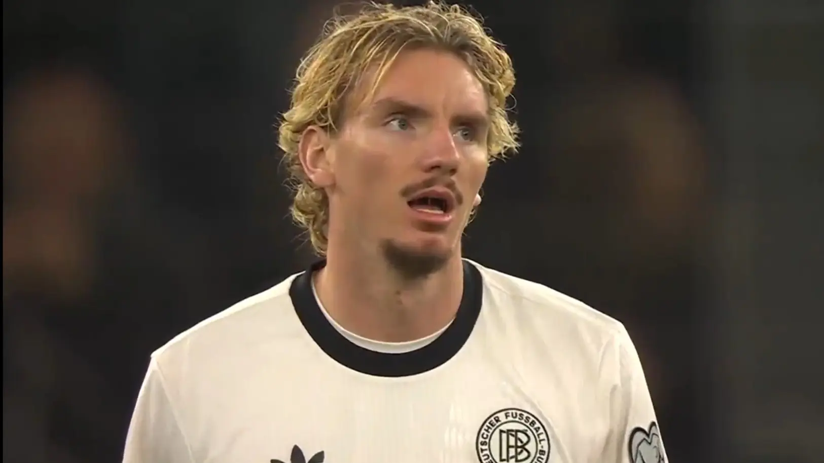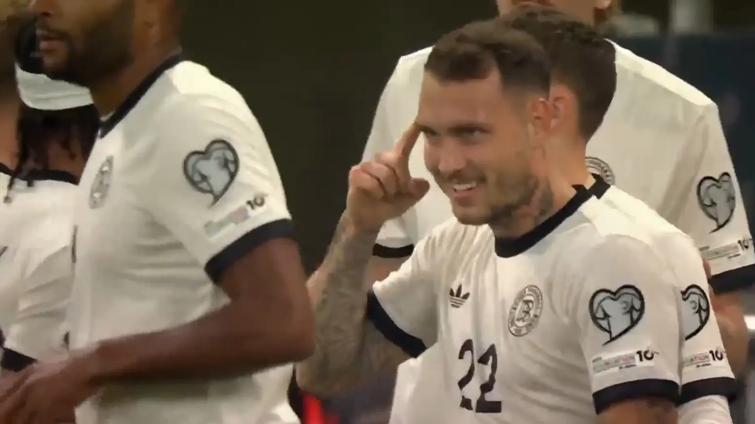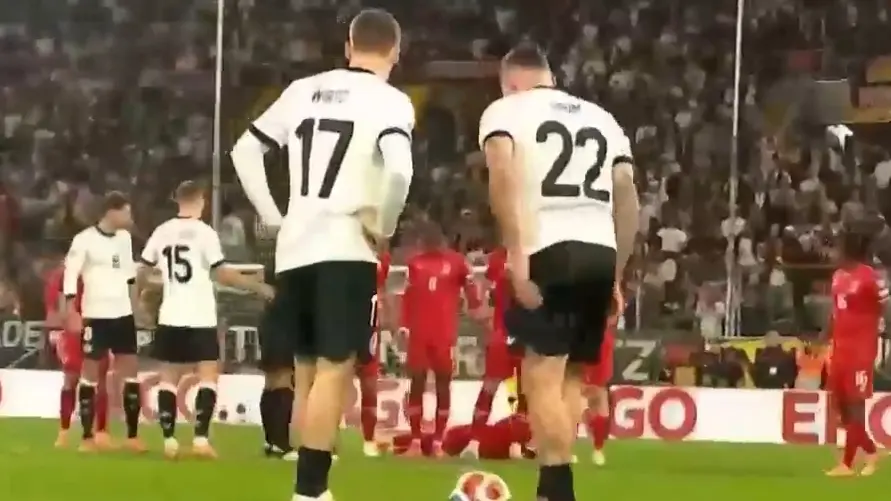 比赛开局德意志战车投入状态不错,格纳布里禁区射门打到沃尔特马德变线入网,可惜慢镜头显示是击中手臂,因此主裁示意无效,属实有点巧合。