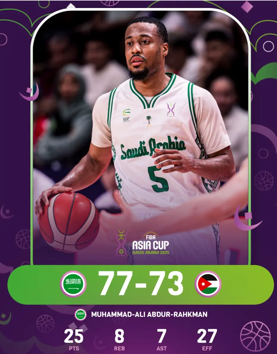 沙特能赢球还是依靠在意甲打拼的拉赫曼,他实在是太强,全场比赛37分钟,20中8,三分11中3,罚球7中6拿到25分8篮板7助攻2抢断的准三双数据。