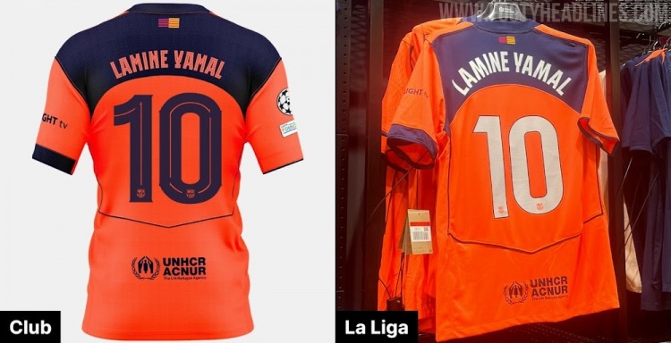 巴萨官方并未提供西甲印字版本的球衣,目前流传的版本是通过独立经销商Futbol Emotion流出,虽可能存在零售商的细微误差,但通常零售商的字号套装都是直接来自西甲官方供应商Avery Dennison,因此理论上应该准确无误。