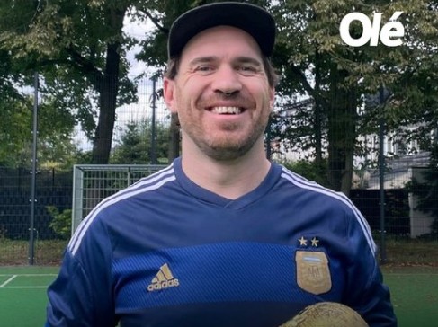 为了实现这一愿望,戈尔德萨克花费巨资打造了一座与真品一模一样的世界杯奖杯,并踏上欧洲之旅,逐一寻找冠军成员。如今,这座复制品奖杯上,已经留下了多位功勋球员的签名:达米安-马丁内斯、迪马利亚、胡利安-阿尔瓦雷斯、德保罗、帕雷德斯。