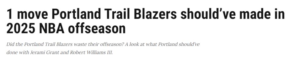 北京时间8月7日,美媒Clutch Points发文谈到开拓者的运作,认为球队该围绕三位年轻人重建,并建议尽快交易走格兰特和罗威。文中提到的三位年轻人是亨德森、夏普和杨瀚森。以下是主要内容——