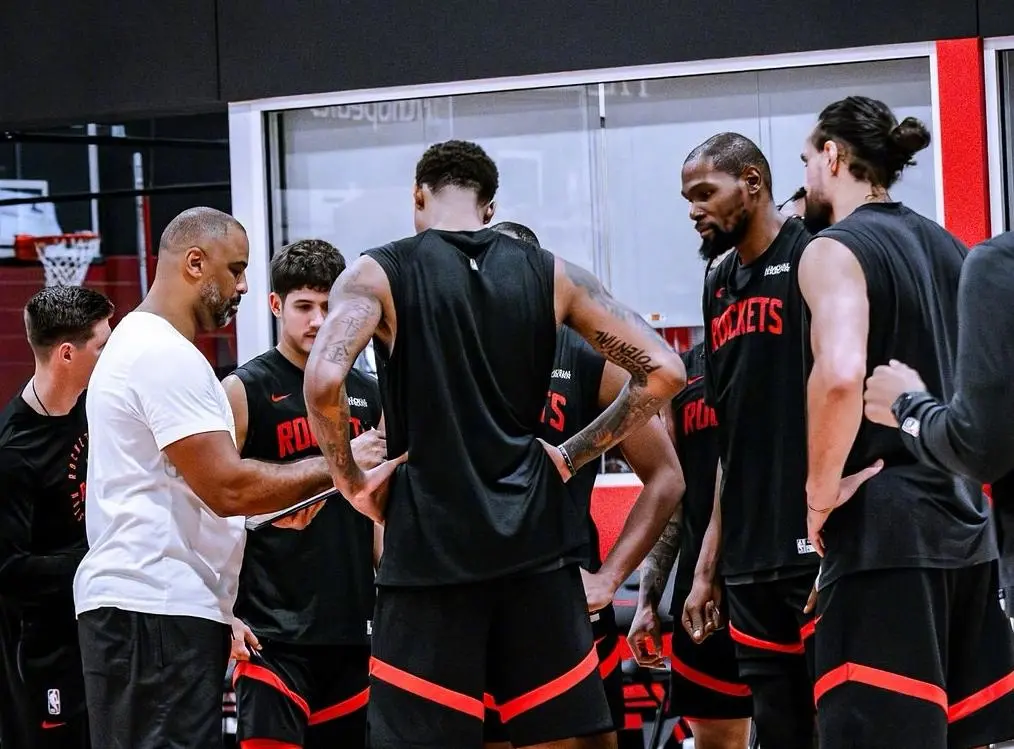 死亡五大这样的战术设计让火箭在季前赛中展现出令人期待的潜力,球迷们也很好奇,这套阵容在常规赛中能发挥多大的威力?或许真的会有超过五小的威力。目前火箭在季前赛中保持三连胜,战术实验和球员磨合都取得了显著成效。杜兰特作为球队的核心球员,在季前赛中逐渐增加出场时间。首场比赛他仅出战半场,此役则打了三节,展现出与年轻队友日益默契的化学反应。杜兰特的球风极具适配性,无论在哪支球队都能无缝融入。在本场比赛中,当火箭在第二节陷入得分荒时,杜兰特挺身而出,依靠个人单打能力稳住局面。