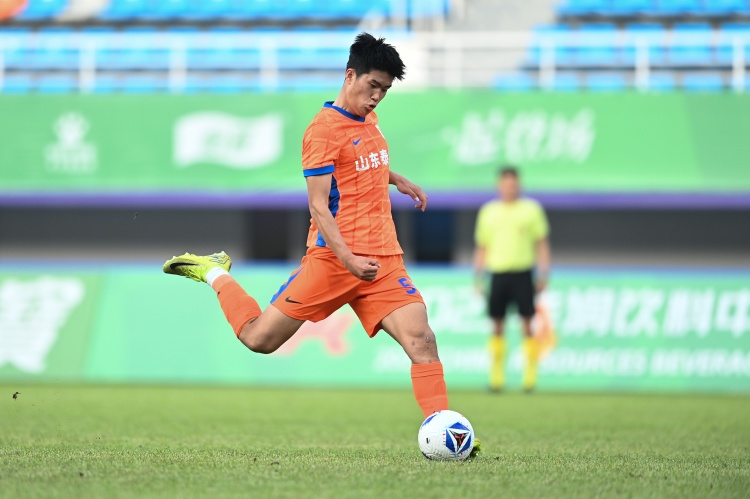 泰山队的战术思路很明确,那就是防守反击。比赛开始前,泰山队进入场地热身的时间较晚,韩鹏一直站在场内观察球员的训练,泰山队射门训练环节的整体命中率并不高,于金永有多次精彩扑救。