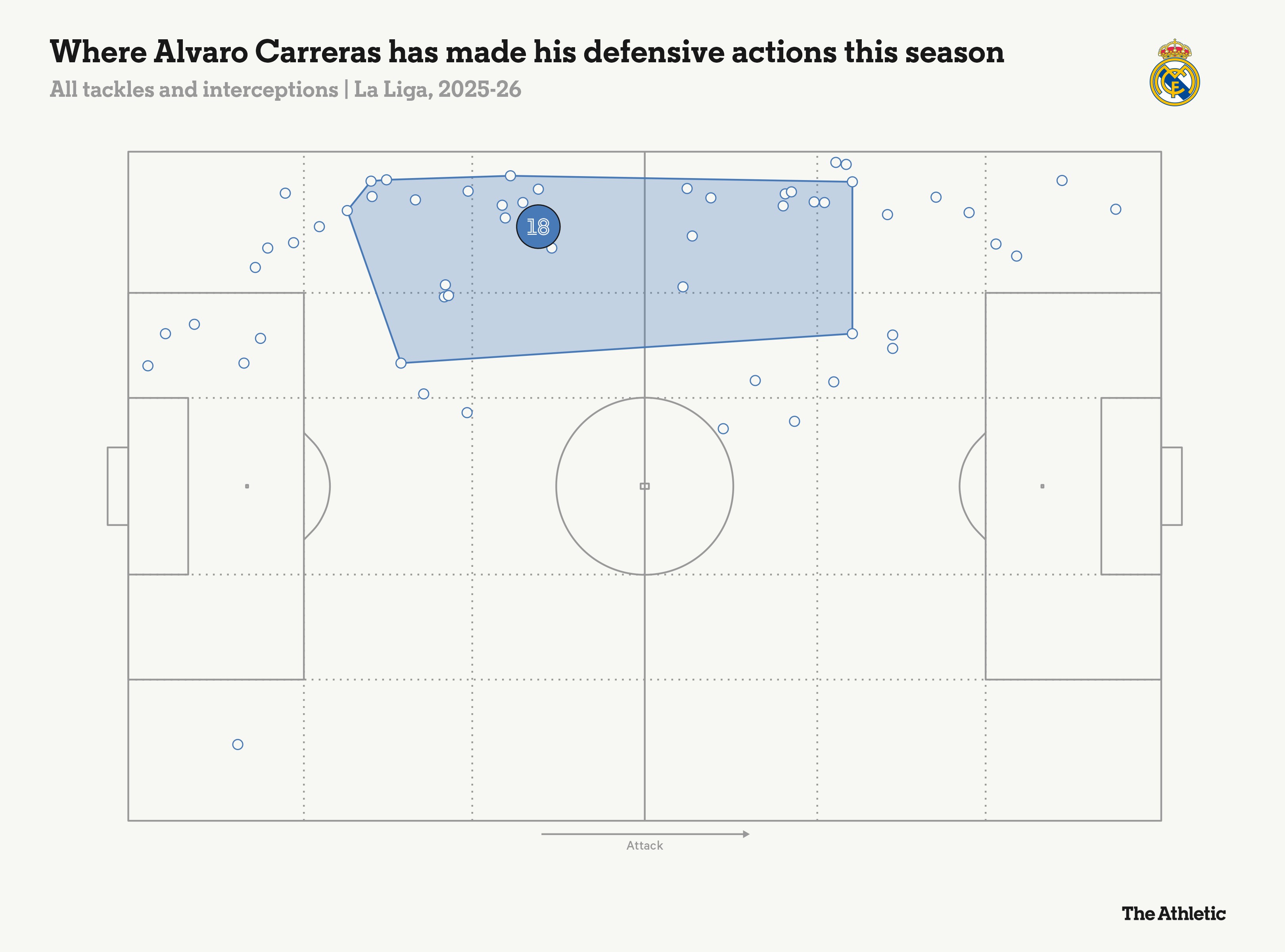 阿尔瓦罗-卡雷拉斯提供了良好的站位和力量。他在10场西甲比赛中尝试了19次抢断,在队内仅次于巴尔韦德、居莱尔和马斯坦托诺(均为21次),并完成了12次拦截,仅次于楚阿梅尼(14次)。