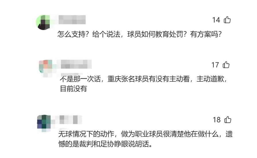 网友们的反应非常直接。有人质疑:"球员如何教育处罚?有方案吗?"有球迷直接指出:"重庆球员有没有主动看望,主动道歉,目前没有。"