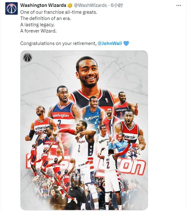 沃尔退役引热议,他是奇才队史助攻王和抢断王,总得分队史第四,奇才官推晒海报送祝福,写道:队史最佳之一!他定义了一个时代,一个永远的传奇,一个永远的奇才人。约翰-沃尔,向你的退役送上祝贺。