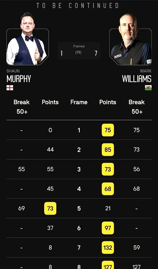 反观墨菲,尽管他在比赛中努力寻找机会,逐渐找回了一些手感,但面对威廉姆斯的强大攻势,他显得无能为力。
