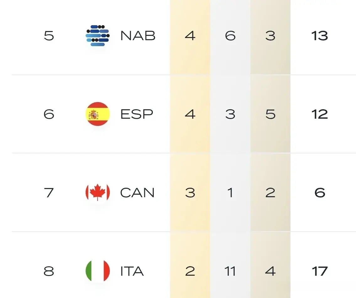 澳大利亚代表团以9金3银7铜继续排名奖牌榜第2位,美国代表团6金10银7铜总奖牌数23枚位居第3。