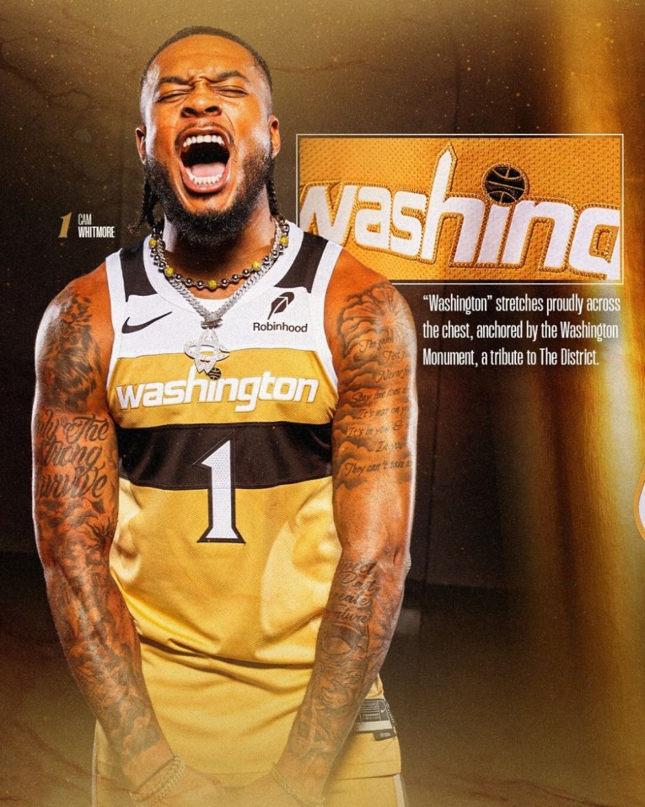 北京时间9月24日,奇才公布新赛季城市版的金色球衣,“白魔”惠特莫尔身穿1号亮相,他戴着墨镜,站在正中间显得霸气十足。美媒评价,惠特莫尔加盟奇才被视为今夏最被低估的引援之一。考虑到这位潜力新星的天赋,以及换个环境对其职业生涯的推动作用,奇才的体系似乎是完美的归宿。
