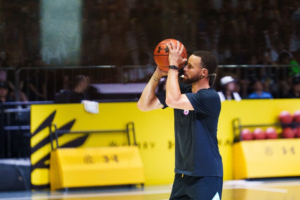 ▲库里三分球命中率非常高。 记者 李雨恒 摄