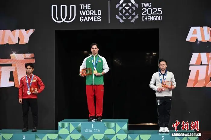 鼓声如雷,棍影疾闪。8日晚的成都世运会男子南拳-南棍决赛现场,伊朗选手沙欣·巴尼塔莱比如同一阵风,在场上疾进、腾跃、急停,南棍在他手中化作闪电般的弧线,直击观众心弦。每一次翻身劈棍,每一次凌空收势,现场总是掌声雷鸣。