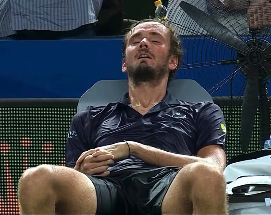 不过,在这场对决中,德约科维奇先是小腿不适申请医疗暂停,随后又在第二盘末段体能告急拼至倒地。他局休坐在椅子上的姿态甚至比前一天力竭的梅德维德夫看起来更令人心疼。