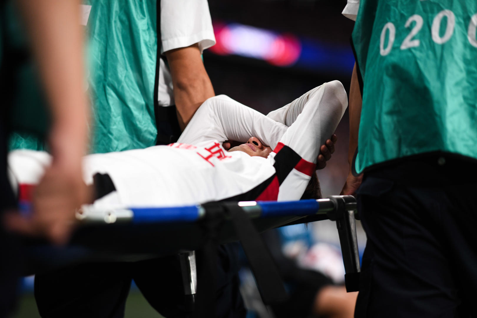 2025年9月21日,韦世豪伤退被担架抬出场外 图据ICphoto