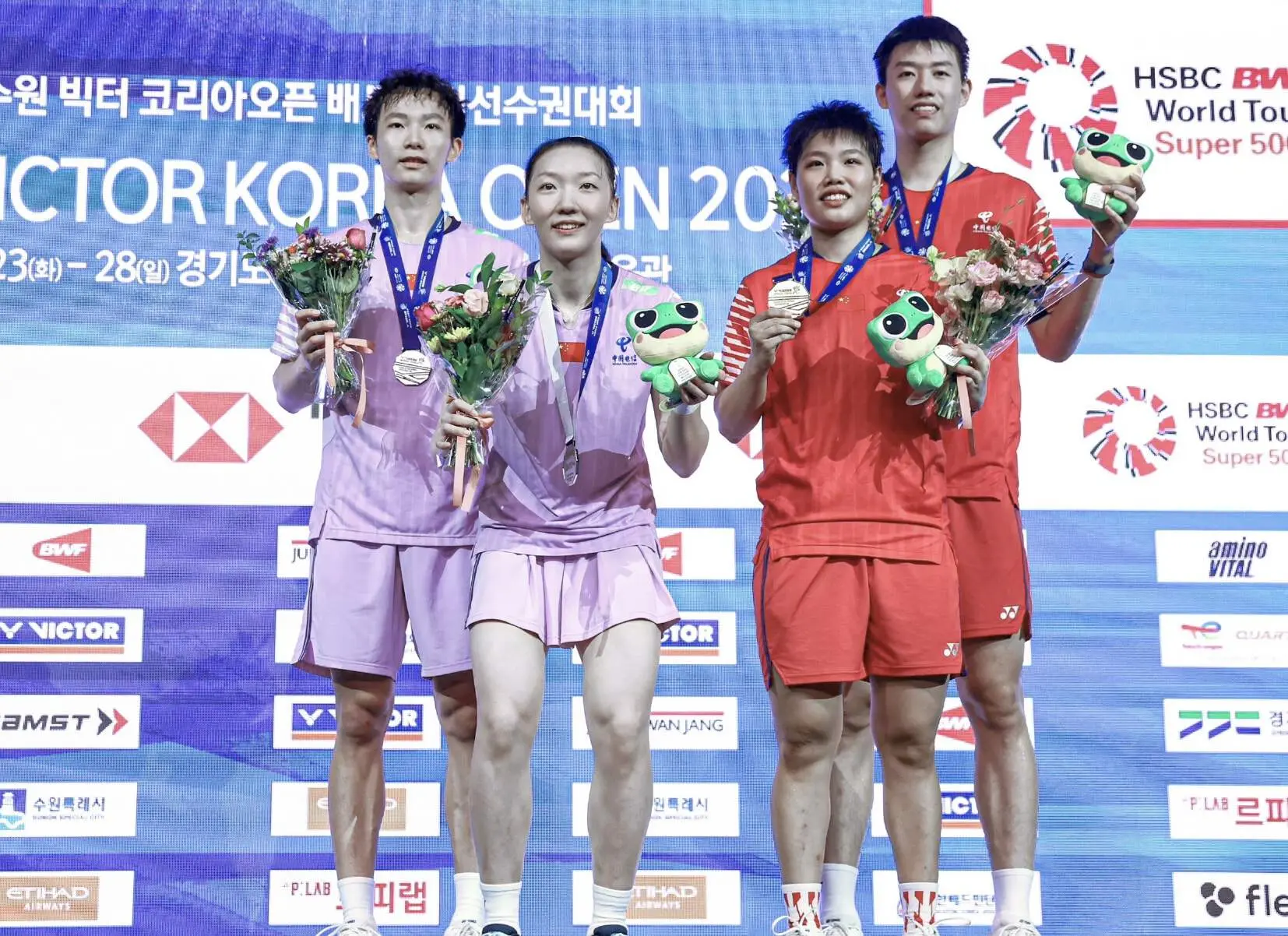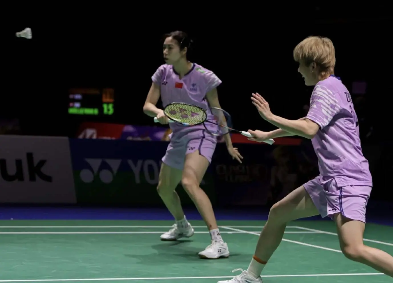 半决赛中,冯彦哲和黄东萍、蒋振邦和魏雅欣均奏凯,帮助中国队提前包揽冠亚军。值得一提的是,此前的韩国公开赛,两对组合同样成功会师决赛。此番再次在金牌战中交手,双方在攻防两端的对决依旧火花四溅、精彩不断。首局较量,蒋振邦和魏雅欣在局末阶段抓住关键分机会以21-19险胜。易边再战,两对组合在前后场展开多拍对攻,比分从20平战至22平,最终蒋振邦和魏雅欣以24-22获胜。