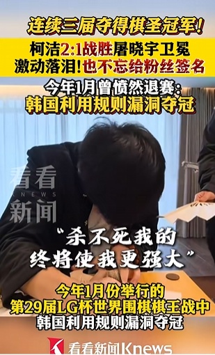 其为棋迷签名时情绪虽已平复