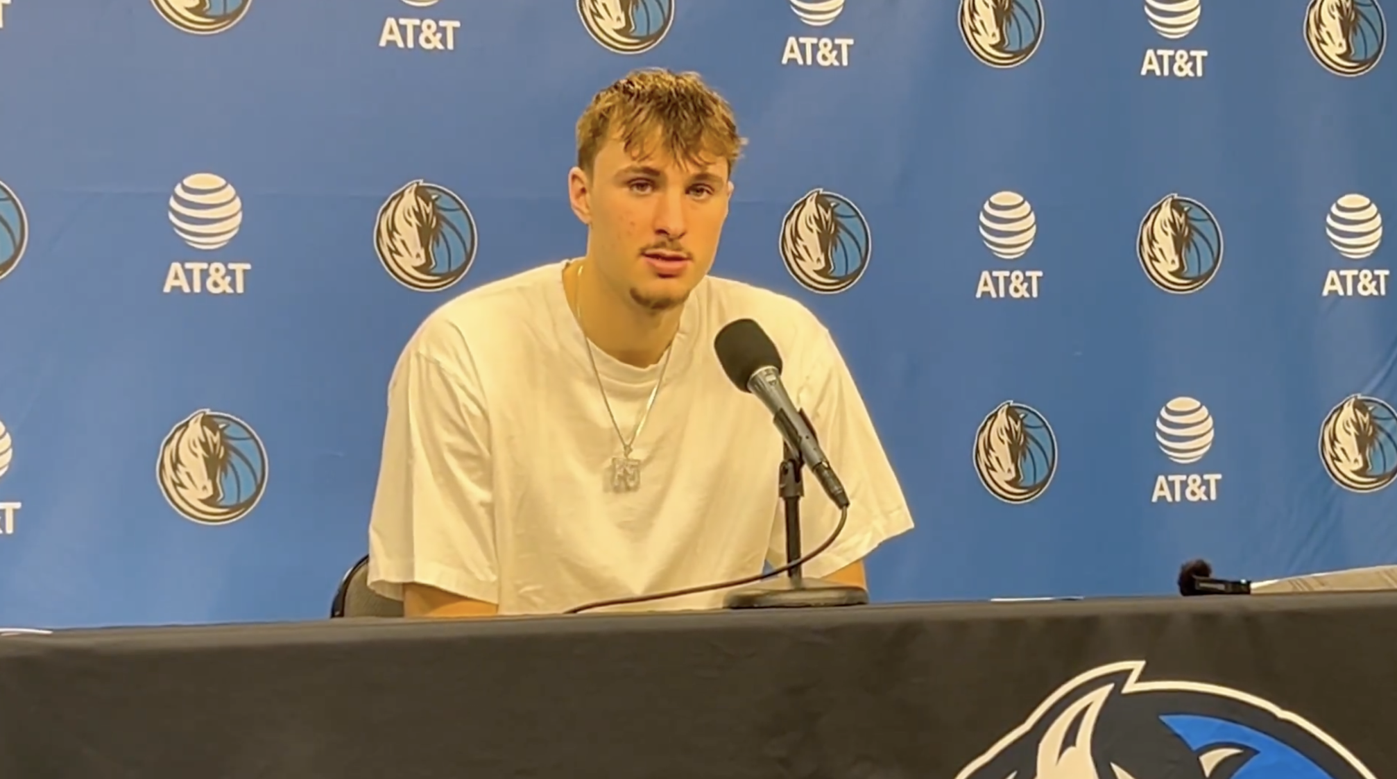 赛后独行侠球员库珀-弗拉格在接受记者采访时谈到了德怀特-鲍威尔。