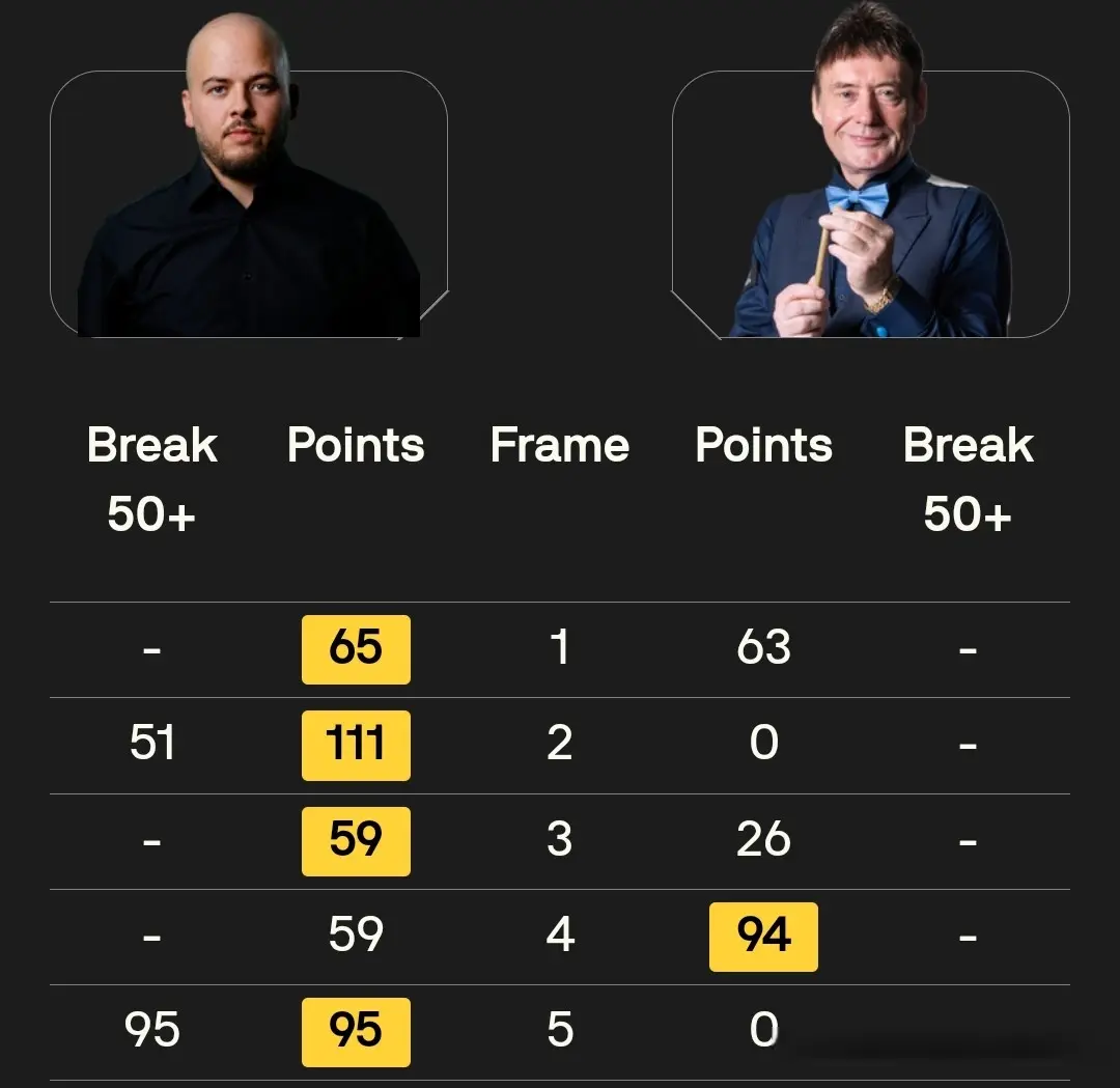 第二局,布雷切尔单杆打出51分的表现以111:0拿下此局2-0领先吉米怀特扩大优势。第三局,布雷切尔以59:26的表现拿下此局从而3-0领先吉米怀特率先拿到赛点。