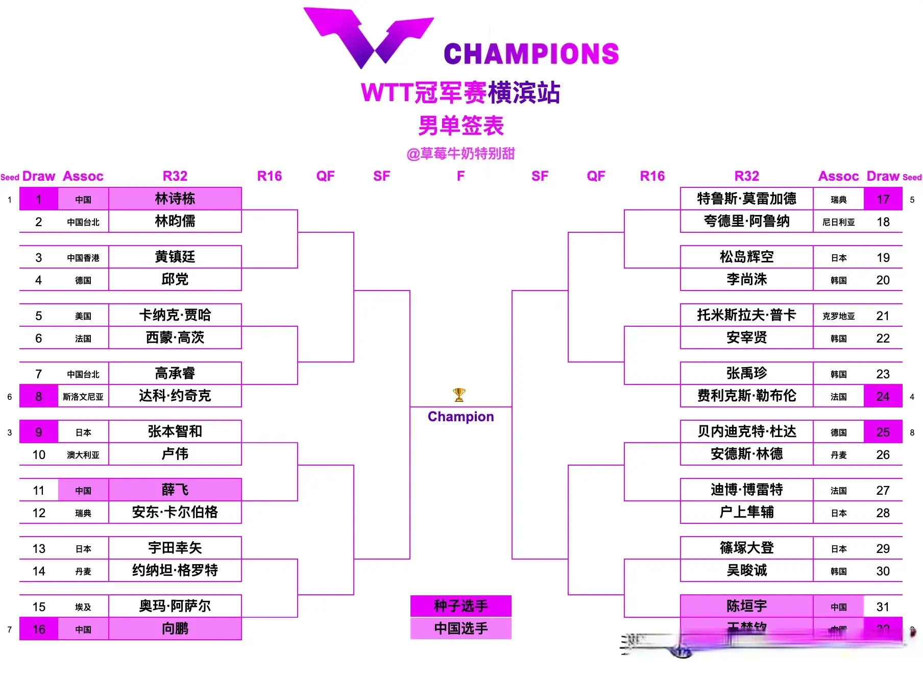 张本智和目前世界排名第4位,是本站比赛的3号种子,澳大利亚选手卢伟目前世界排名第40位,因奥恰洛夫退出本站比赛,递补参赛,获得本次冠军赛的参赛名额。