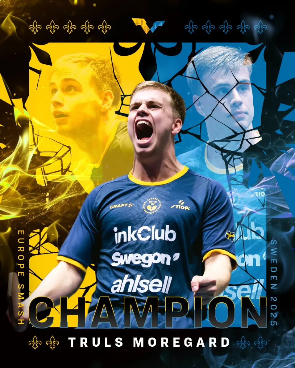 2025年WTT欧洲大满贯瑞典站最后一场比赛完结,莫雷加德4-3击败林诗栋登顶,至此5项冠军全部产生:男单莫雷加德、女单孙颖莎、女双孙颖莎/王曼昱、混双林诗栋/蒯曼、男双黄镇廷/陈颢桦。