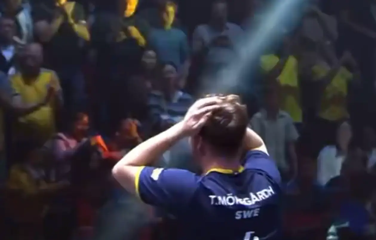 平复了心情之后,小莫第一时间跑到家人身边与家人一一握手、击掌,小莫本次大赛是完全主场作战,他就是瑞典本土球员,所以这场决赛几乎都是为他加油呐喊的声浪。
