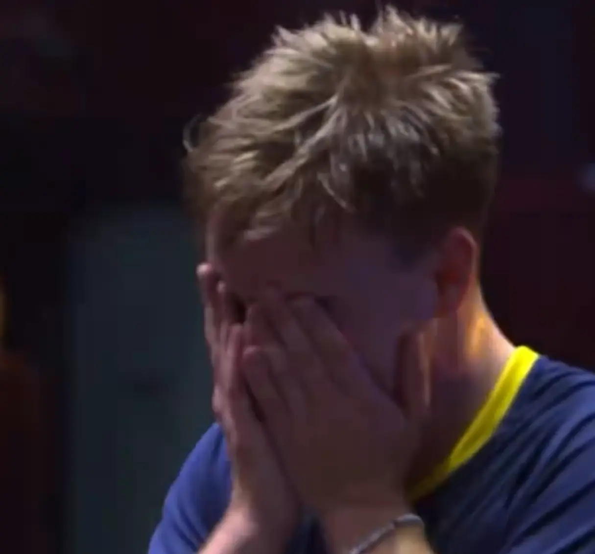 莫雷加德这场比赛赢得并不轻松,虽然他前四局是3-1领先,可林诗栋逐渐进入状态,11-4、13-11连赢两局进入决胜局,决胜局林诗栋还一度9-8领先,莫雷加德与林诗栋的最后一分长台的对决无比精彩,当小莫拿到第11分时他激动的坐在地上捂脸落泪了。