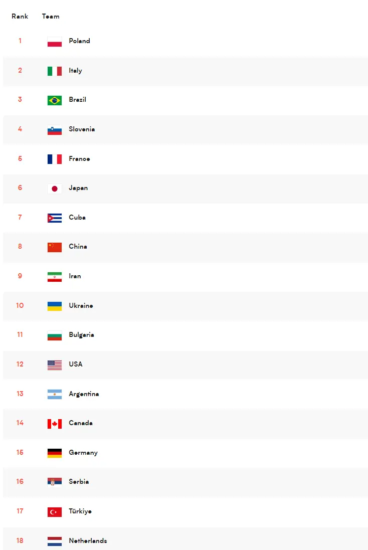 2025年:波兰、意大利、巴西;(波兰算是时隔一年后重新登顶)