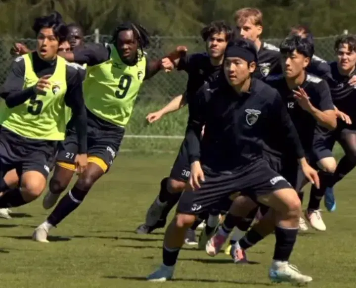刘锦程跟韩国U20国青小将金泰元,一起在葡甲波尔蒂芒人U23队训练、分组对抗