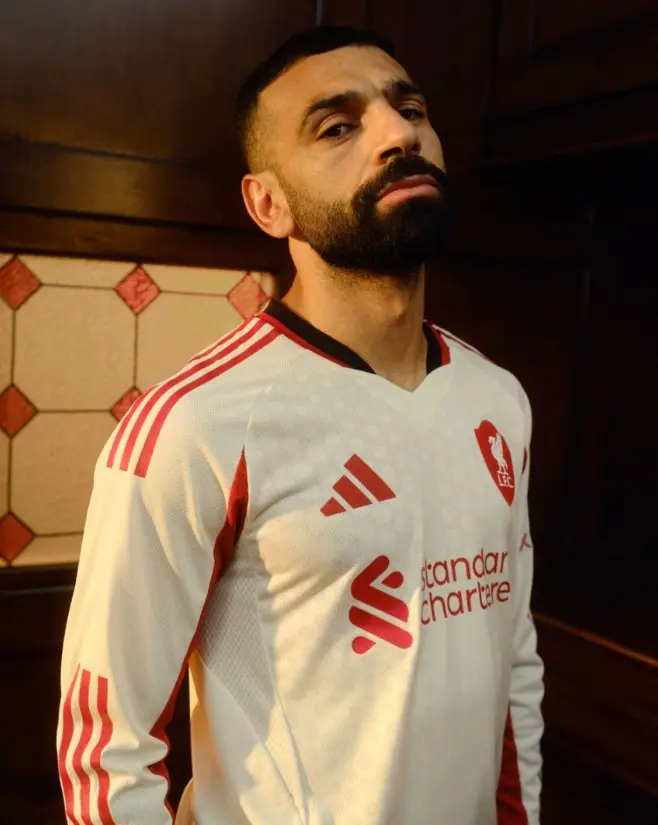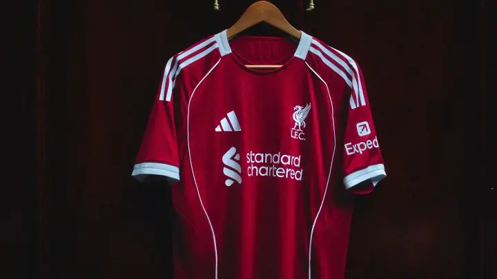 全新利物浦主场战袍以深邃草莓红为基调,极致凝练俱乐部精神内核。白色阿迪达斯三条纹贯穿衣袖,胸口饰以经典利弗鸟。客场球衣则延续利物浦经典的客场配色,以奶油白为主色,缀以黑红双色细节作为点睛。队徽创新采用盾形框架设计,利弗鸟坐落于盾牌之中,其轮廓灵感源自1906年安菲尔德主看台建筑结构,通过当代手法重构历史图腾。