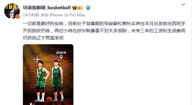 据知名篮球媒体人导演我躺哪透露,此前因打架被篮协禁赛3年的辽宁男篮黄秋实与张峻豪2大新星即将于本月开启西班牙留洋之旅,由于西班牙U22联赛只是各俱乐部练兵性质,球队基本不发薪水,只有一点点的津贴,因此黄秋实与张峻豪两名小将在西班牙的工资与费用仍由辽宁男篮承担。从辽篮俱乐部积极为2人找出路,不放弃两名小将的态度来看,这次被重罚反倒逼着年轻球员大胆去到海外联赛发展,塞翁失马焉知非福,谁知道3年过后,两名球员会发展成什么样,也许会泯然众人,也可能一飞冲天,全靠两名球员的自律性。