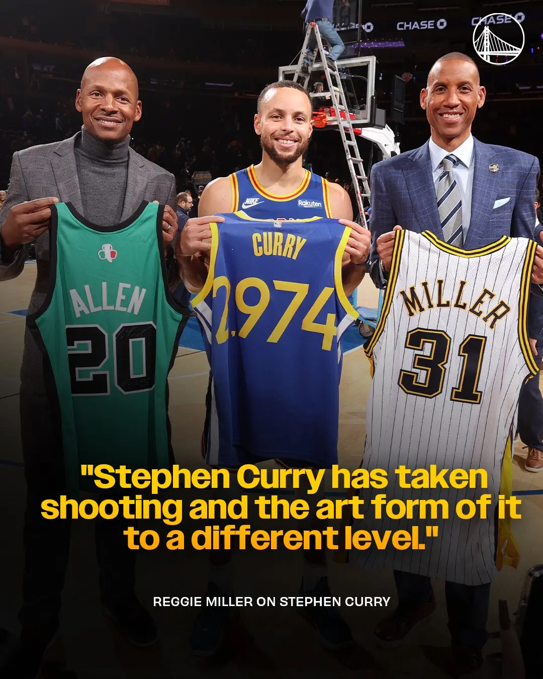 克莱汤普森说道“斯蒂芬库里,雷吉米勒...我喜欢雷吉的精彩录像带,因为他的武器库中有那么多制胜的投篮,那我就选雷阿伦,因为雷显然保持着NBA历史上这么多年最多三分的记录。”