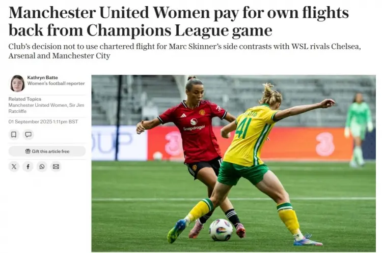 直播吧9月1日讯 据《电讯报》报道,曼联俱乐部未安排包机,让自家女足自费购买欧冠客场返程机票。