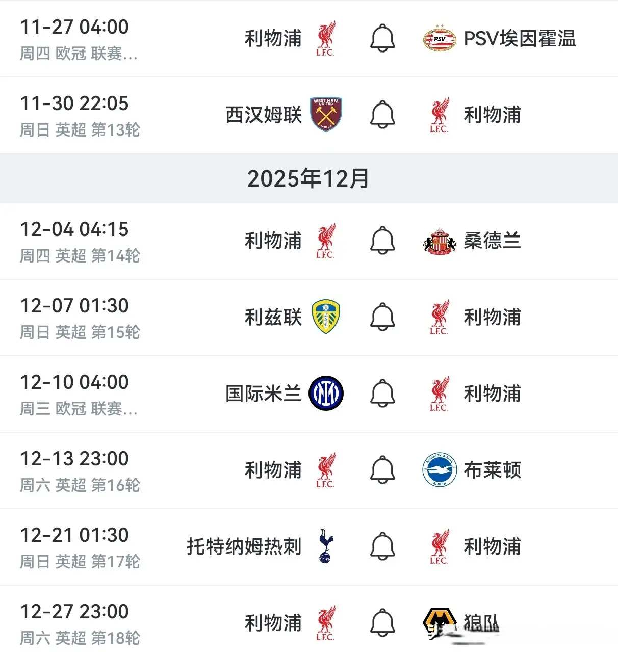 接下来利物浦队的赛程并不算特别困难,在此期间的8场比赛中,除欧冠对阵国米、英超对阵热刺外,其他球队实力都不算太强。