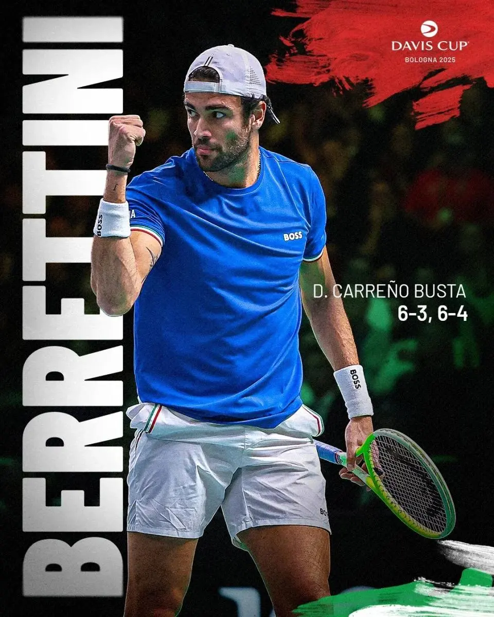 贝雷蒂尼让人必须称奇的是,本赛季赛场表现一般,结果到了戴维斯杯表现异常勇猛,继半决赛对阵比利时队建功之后,又将这样的神勇表现延续到了对阵布斯塔这一战,最后以6比3和6比4横扫过关,极大地提振了意大利全队的士气。