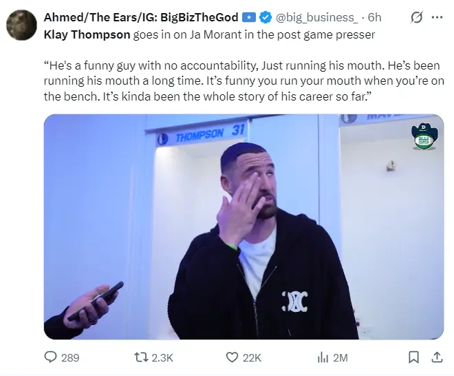 赛后独行侠记者Landon Thomas写道:莫兰特说35岁克莱是流浪汉、废人。但26岁的莫兰特本赛季场均命中率35.9%,三分命中率16.7%。(独行侠记者力挺克莱)