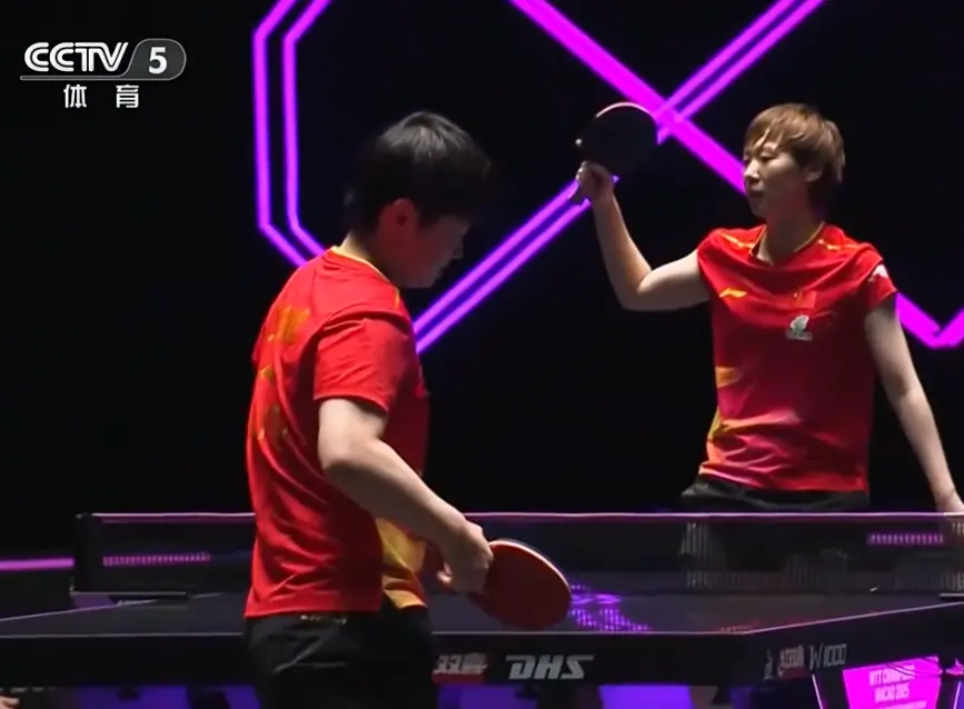 第二局慢热的王曼昱也进入状态,她与孙颖莎在台内展开激烈争夺,两人打出爆分,最终王曼昱惊险15-13扳平大比分,两局就用了28分钟,孙颖莎累的连连擦汗。