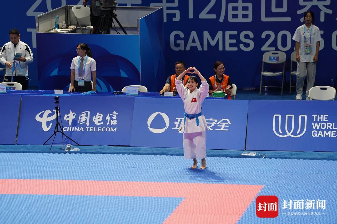 8月8日,2025年成都世界运动会空手道项目比赛在简阳文体中心体育馆正式拉开帷幕。当晚,在女子型项目决赛中,经过激烈角逐,中国香港选手刘慕裳获得金牌。
