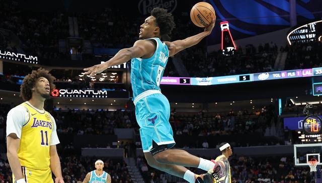 末节,黄蜂7-2缩小分差,随后里夫斯两罚全中以及轰进三分,连得5分助湖人稳住局面,之后黄蜂继续反扑,一波8-0追到10分打停比赛;八村垒中投,东契奇虚晃上篮,辛普森和麦克尼利连中两记三分,东契奇2+1,布里奇斯两罚全中,八村垒中投再中,斯马特输送三分,布里奇斯两罚全中,迪亚巴特空切暴扣,艾顿单臂暴扣,布里奇斯再中三分,东契奇罚球杀死比赛,最终湖人拿下胜利。