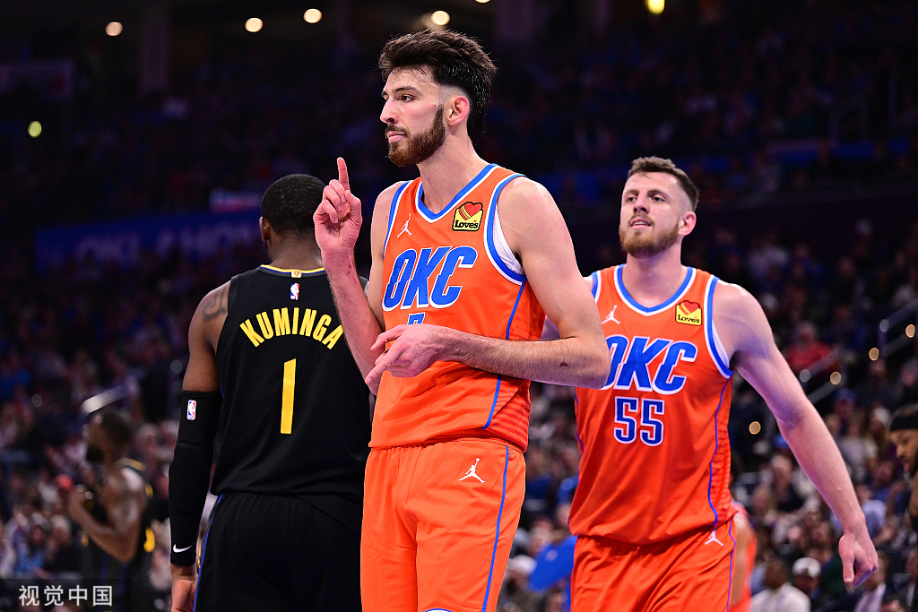 俄克拉荷马雷霆亚历山大28分5板11助,霍姆格伦23分11板2助;金州勇士库明加13分3板4助,吉米-巴特勒12分3板2助。