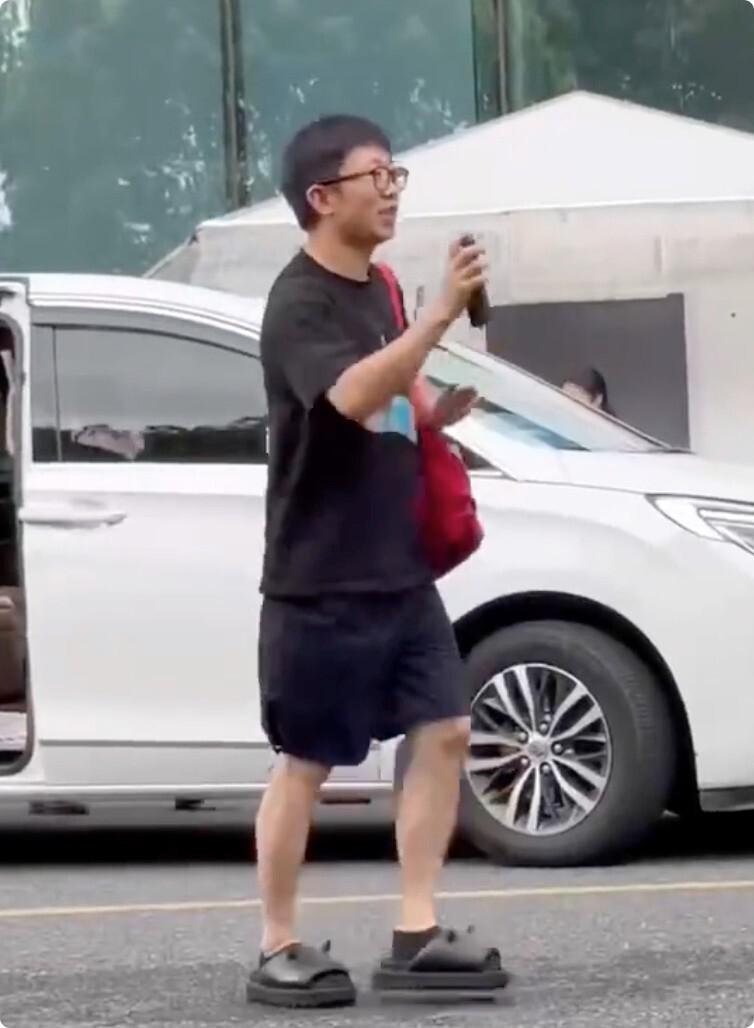 路透里,他穿着一身黑衣在太阳底下暴晒,整个人好像晒红了一样,但依旧没什么明星包袱。