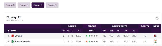 中国男篮第二场全队12人全部得分,也是成功得分达到100分展现出不俗的攻击力,前两场合计净胜分+36,成功升至小组第一。