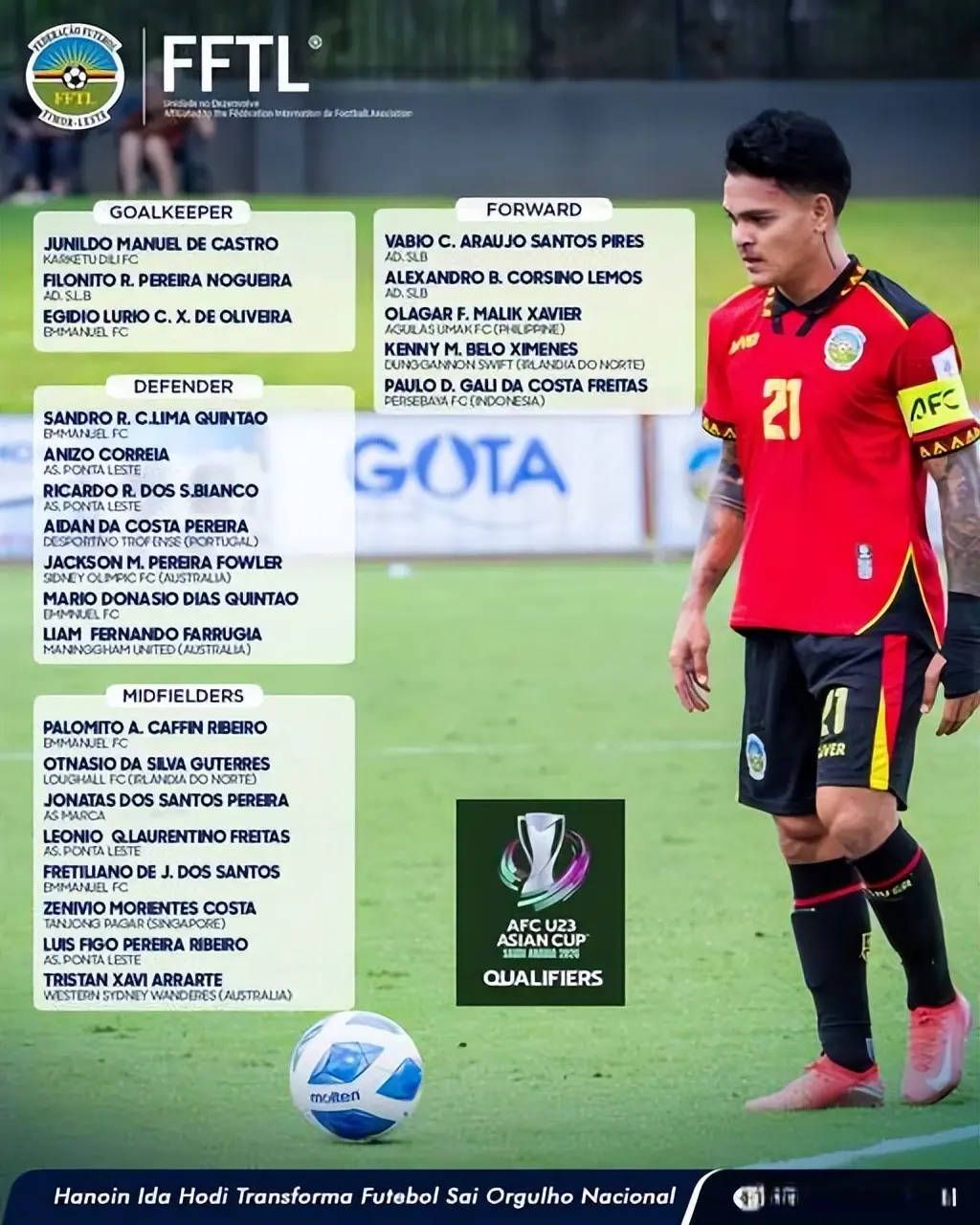 法鲁吉亚、杰克逊·福勒、科雷阿、金塔奥、泽尼维奥、弗雷特里亚诺、菲戈、V.卡纳瓦罗、巴希托和哈维尔都已经是东帝汶成年国家队国脚,他们的身体条件及大赛经验均不差。