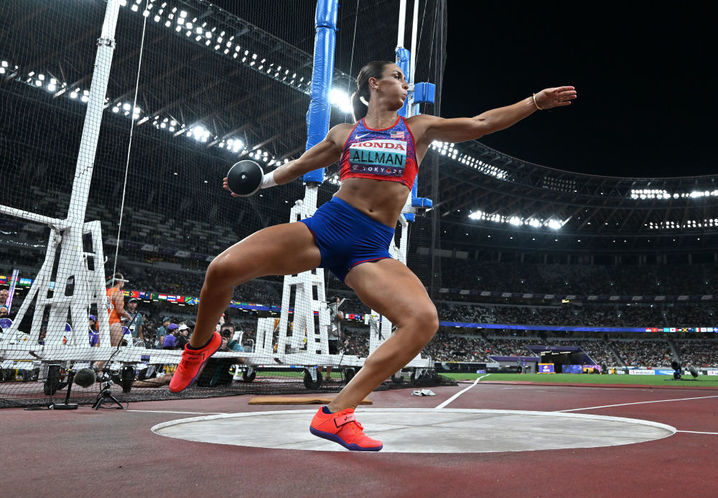 9月14日,美国选手奥尔曼在比赛中试投。最终,她获得冠军。新华社记者 宋彦桦 摄