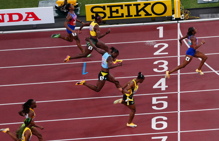 女子百米决赛中,同样从未在奥运会或世锦赛上拿到过个人项目冠军的杰弗逊-伍登优势明显,以10秒61的成绩夺冠,改写了同胞理查德森两年前在布达佩斯创造的10秒65的世锦赛纪录。牙买加的克莱顿以10秒76的个人最好成绩摘得银牌。巴黎奥运会冠军、圣卢西亚选手阿尔弗雷德以10秒84位列第三。