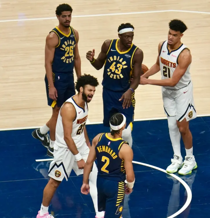 第三节比赛穆雷命中三分,谢泼德连得5分后穆雷直接打出一波8-0,马瑟林投篮命中后琼斯罚球2中1,接下来的比赛马瑟林、内姆哈德虽然试图追分,但是穆雷继续保持进攻状态不说,约基奇、沃特森也持续得分,虽然后续谢泼德投篮得分,赫夫、马瑟林也命中三分,但步行者依旧落后21分。接下来的比赛约基奇、穆雷和布朗顶住步行者反扑,三节比赛结束掘金领先23分。第四节比赛步行者打出一波13-4,穆雷罚球2中2后麦康奈尔打板得分,穆雷命中三分后马修斯罚球2中2,沃克抛投命中后步行者落后13分,尽管接下来的比赛步行者试图追分,但是穆雷持续爆发顶住步行者反扑,最终掘金完胜步行者。