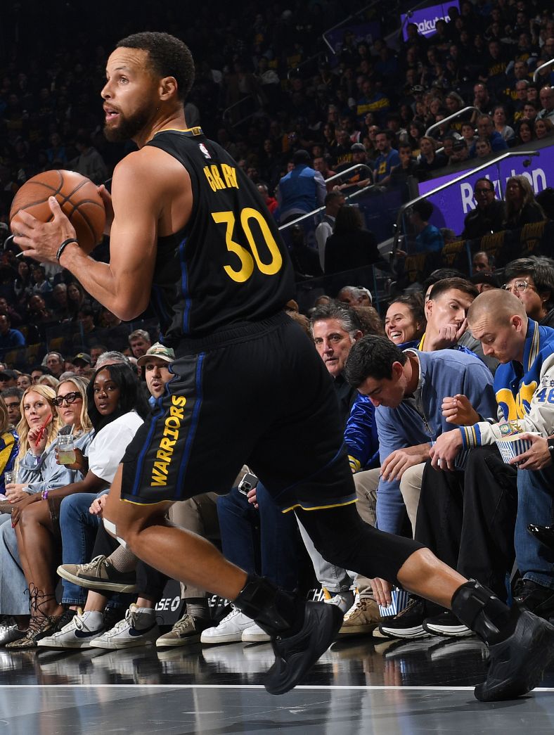 第二节的库里就十分炸裂了,突破对抗2+1,外线连续三个三分球命中,其中还有两次是超远的三分球,单节6分钟6中6+三分5中5,拿到18分,凭借着库里的超神发挥勇士单节44-30完成反超,库里上半场已经拿到23分3助攻。