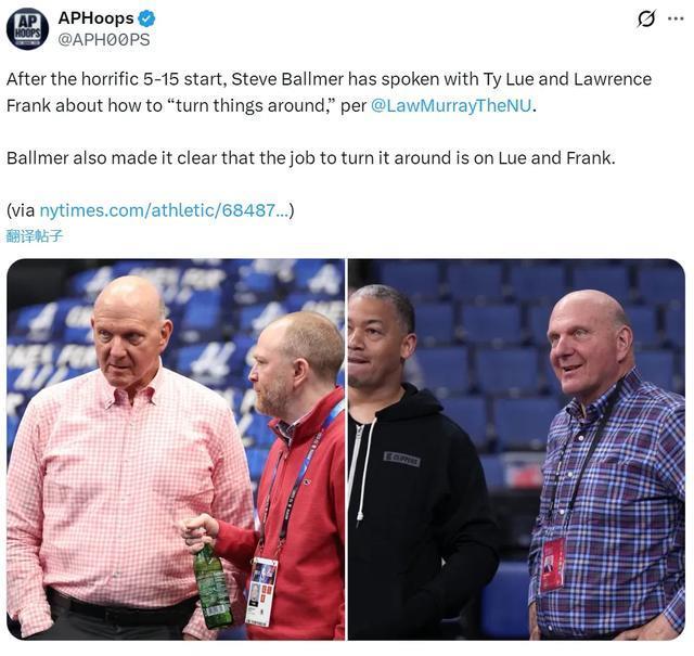 鲍尔默明确表示,弗兰克和泰伦卢必须承担各自的责任,快船能否扭转颓势就看他俩了。刚刚过去的11月份,快船2胜13负。快船上一次单月输掉13场,还要追溯到2010年3月。ESPN最新报道,NBA各队感到恐慌,因为雷霆拥有快船的首轮签。