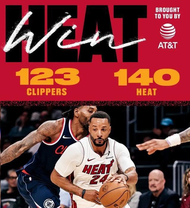 三节打完,热火114-82领先快船32分。第四节除了哈登,其余快船主力留在场上,分差不断缩小。全场战罢,热火140-123战胜快船。哈登6中2拿到11分3助5失误,正负值-39生涯最差。小卡36分7板2助3断、祖巴茨16分13板2助。